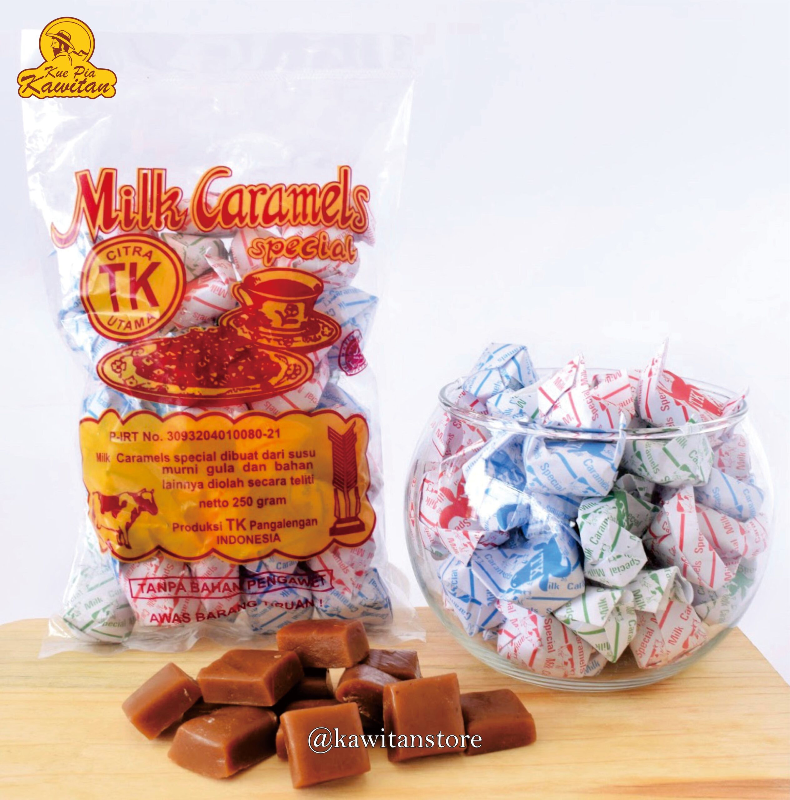 Varian 250 gram dari caramel TK dengan tekstur kenyal lembut dan rasa manis gurih yang khas. Disukai semua usia dan cocok untuk dibawa bepergian.