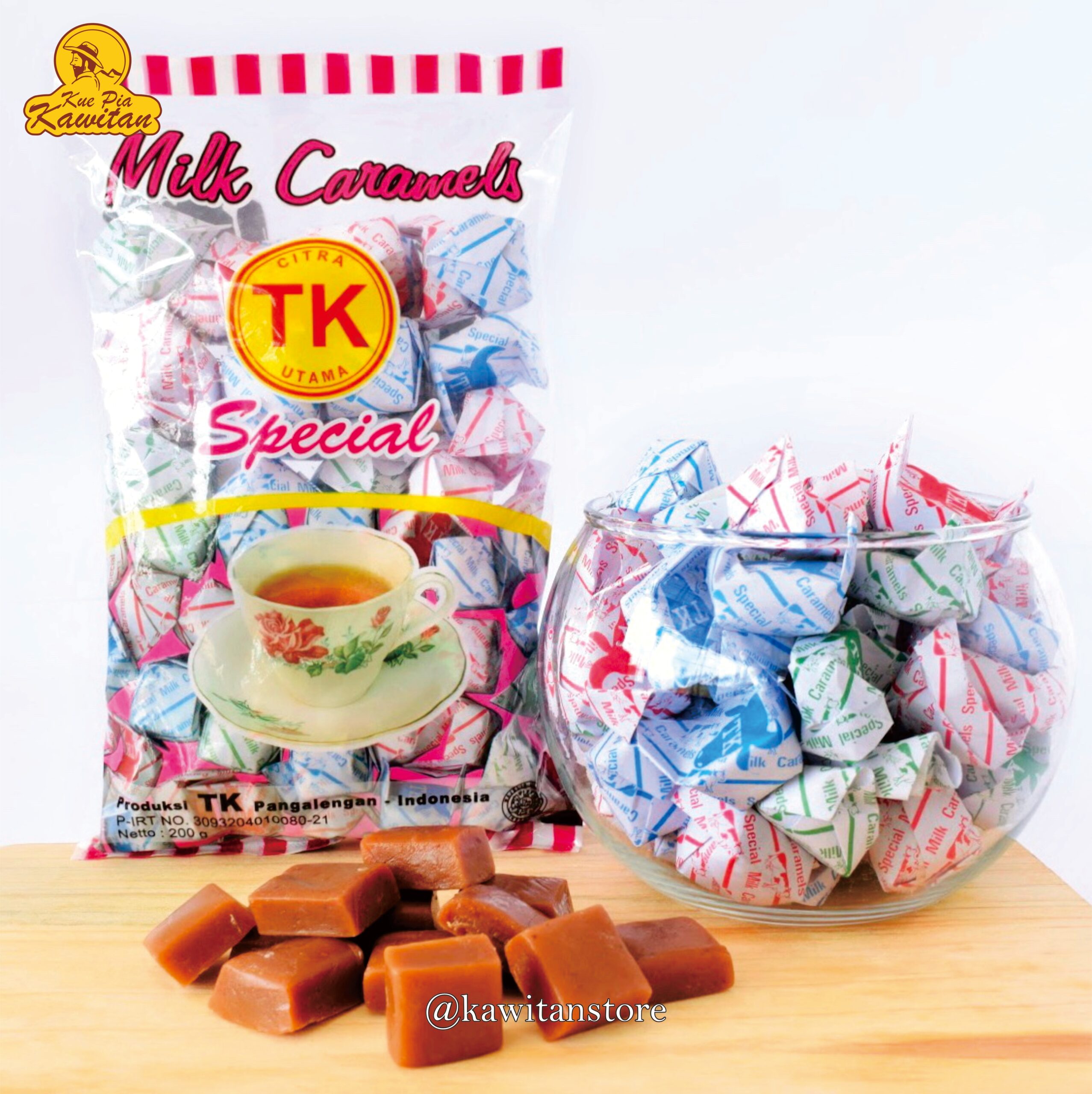 Caramel lembut dengan rasa manis seimbang dan aroma susu khas Pangalengan. Ukuran 200 gram ini pas untuk camilan pribadi atau oleh-oleh ringan.