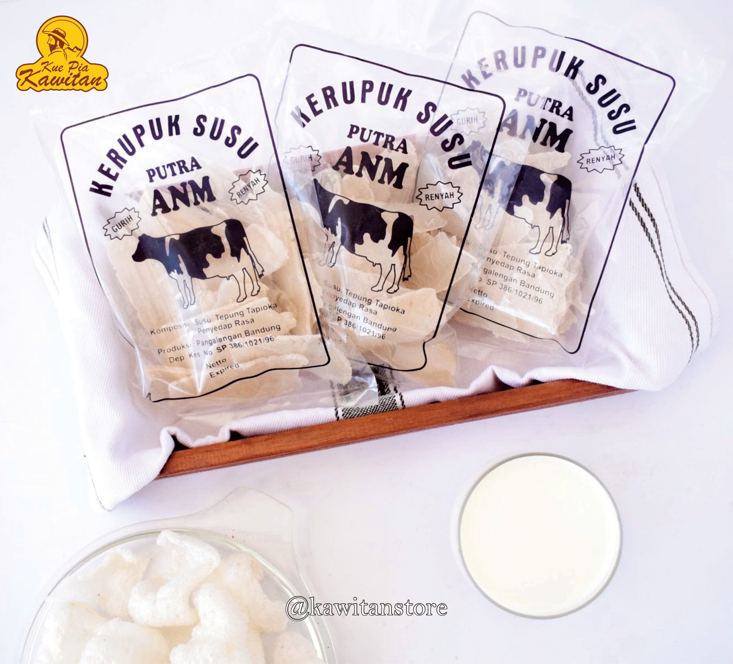 Kerupuk susu mentah yang bisa digoreng sendiri di rumah. Setelah digoreng, hasilnya renyah dengan aroma susu yang kuat.